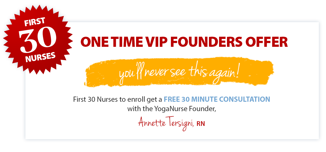 FIRST 30 NURSES TO ENROLL GET A FREE 30 MINUTE CONSULTATION WITH THE YOGANURSE FOUNDER, ANNETTE TERSIGNI, RN